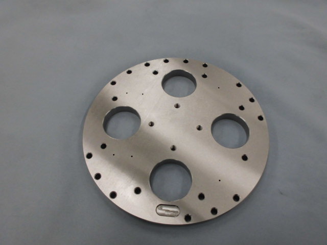 こちらは愛知・静岡 加工部品調達センターが、海外の部品供給ネットワークを活用して調達した円盤プレートになります。穴数が多い加工品で、平面度を保証しております。