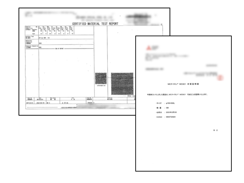 5.ミルシート、材料証明書の提出にも対応!